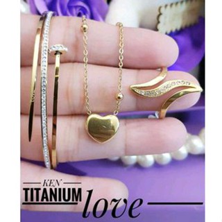 Set Perhiasan Titanium Wanita Dewasa Terbaru Gold Kalung Love Jedar 1603a5