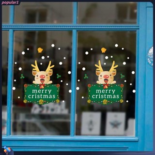 Populer Stiker Dinding Jendela Toko Removable Motif Santa Claus Kartun Snowman Elk Hiasan Natal