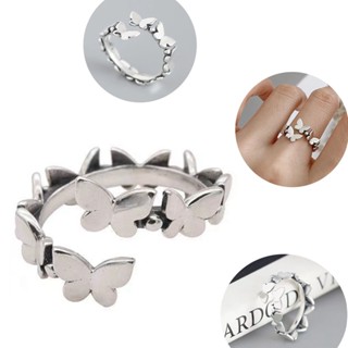 Vintage Warna Perak Kupu-Kupu Cincin Untuk Wanita Pria Manik-Manik Geometris Cincin Jari Yang Dapat Disesuaikan Desain Kreatif Fashion Perhiasan Hadiah
