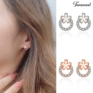 Twowood 1pasang Ear Studs Round Ring Elegan Mini Hadiah Fashion Perhiasan Sparkling Cubic Zirconia Plum Blossom Wanita Anting Untuk Harian