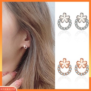 [WOD] 1pasang Ear Studs Round Ring Elegan Mini Hadiah Fashion Perhiasan Sparkling Cubic Zirconia Plum Blossom Wanita Anting Untuk Harian
