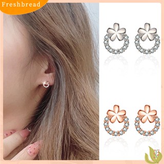 < Freshbread > 1pasang Ear Studs Round Ring Elegan Mini Hadiah Fashion Perhiasan Sparkling Cubic Zirconia Plum Blossom Women Earrings Untuk Harian