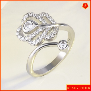 [Ready Stock]Creative Simple Full Diamond Feather Opening Ring