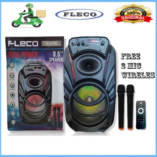 paket speaker portabel fleco f8606 free 2 pcs mic wireless + remote control promo