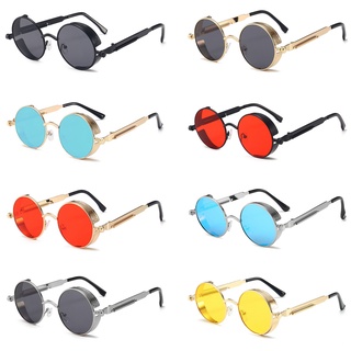 Kacamata Hitam UV400 Bingkai Bulat Bahan Logam Gaya Retro Klasik Gothic Steampunk Untuk Pria Dan Wanita