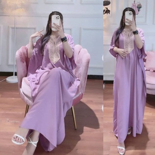 Gamis Kaftan Soft Lilac Premium Quality | Gamis Soft Lilac Premium | Gamis Wanita | Gamis Jumbo | Busui Friendly | Wudlu Friendly | Premium Quality | COD