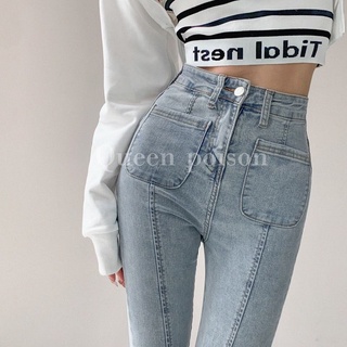 Red High Street Spice Girl Long Leg Jeans Musim Panas Vintage Tinggi Pinggang Slim Lurus Berbahan Microflared Bulu