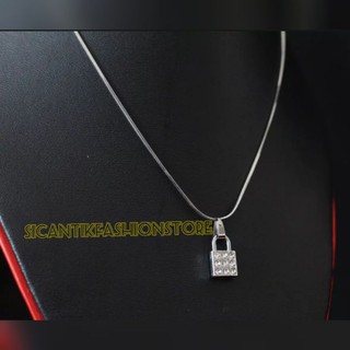 Kalung Titanium plus lionti gembok fashion wanita terlaris anti Karat kalung titanium liontin silver