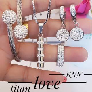 set kalung cincin anting koin titanium
