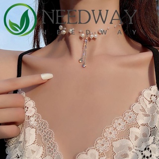 NEEDWAY Needway Bunga Mawar Kalung Hadiah Indah Berkilau Kerah Rantai Perempuan Berlian Wanita Klavikula Rantai