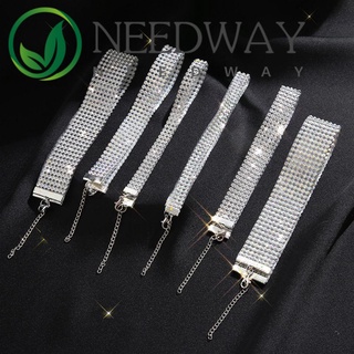 (LUCK) Kalung Choker Wanita Desain Dasi Hias Berlian Imitasi Gaya Sexy Bling Untuk Prom / Pernikahan