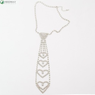 NEEDWAY Berlian Imitasi Dasi Kalung Panjang Mewah Barok Strip Klavikula Rantai Berlian Pakaian Dasi Kalung Temperamen Wanita Kalung