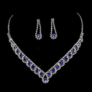Twowood 1set Kalung Pengantin Elegan Bling Biru Berlian Imitasi Wanita Kalung Tetesan Air Anting Kit Perhiasan Pernikahan