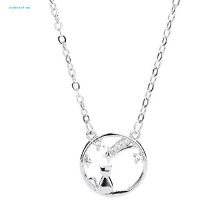 Kalung Rantai Klavikula Hias Liontin Bintang Kucing Aksen Berlian Imitasi Untuk Wanita