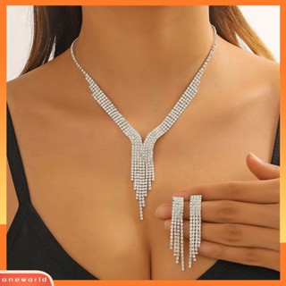 [ONE] 1set Kalung Perhiasan Berlebihan Rumbai Panjang Berlian Imitasi Dress Up Kalung Stud Anting Set Perhiasan Perjamuan Aksesori