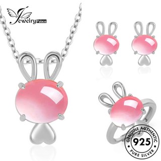 Jewelrypalace Asli925 Set Pink Bunny Emas Berlian Wanita Kristal Kalung Perak Elegan S72