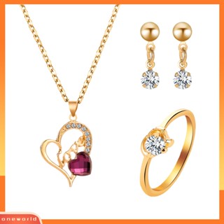 [oneworld] Cinta Hati Liontin Kalung Berlian Imitasi Hias Anting Cincin Wanita Set Perhiasan