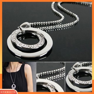 {oneworld} Wanita Fashion Lingkaran Ganda Hias Berlian Imitasi Rantai Panjang Kalung Perhiasan Hadiah
