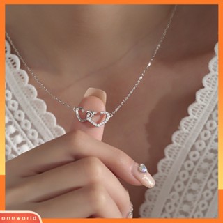 [EONE] Wanita Kalung Berlian Imitasi Mengkilap Elegan Hias Adjustable Perhiasan Hadiah Manis Berongga Ganda Cinta Hati Liontin Kalung Rantai Klavikula Untuk Pesta
