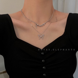 Kalung Rantai Klavikula Dengan Liontin double butterfly cross Gaya hip hop