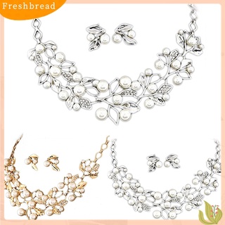 Fresh| Set Kalung Chokeranting Tusuk Desain Daun Hias Mutiara Imitasi Untuk Pengantin Wanita