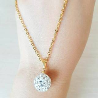 Kalung Fashion Bola permata Putih Titanium Antikarat