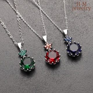 S925 Perak Berwarna Permata Tourmaline Beruntung Liontin Pendant Elegan Elegan Topaz Kalung