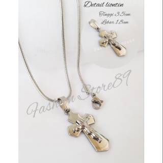 Kalung Titanium Salib 2 Layer Trending Elegant Premium Style
