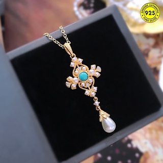Kalung Rantai Dengan Liontin Salib Aksen Mutiara Mewah Untuk Wanita