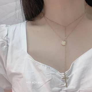 Kalung Rantai Choker Dua Lapis Dengan Liontin Salib Hati Untuk Wanita