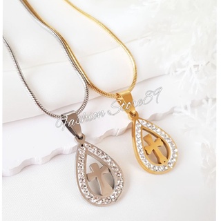 ready kalung salib permata Import titanium gold white Antikarat Permata satu
