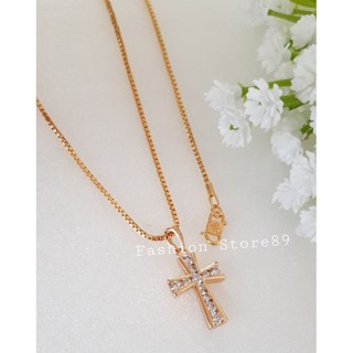 NAL95. Kalung salib xuping lapis emas dgn mata zircon ukuran 45 cm nori