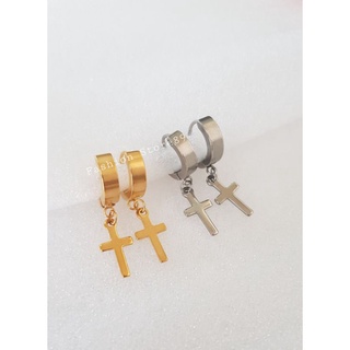 Anting KPOP model salib tindik dan Jepit / Anting salib gantungan / Anting titanium