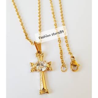 Kalung salib fashion permata titanium gold /kalung fashion Rohani KS019