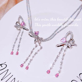 Goldkingdom Aksesoris Perhiasan Fashion Ready Stock Desainer Cinta Busur Rumbai Set, Anting Kupu-Kupu Peri Super, Kalung Berlapis Berlian Merah Muda Berbintang