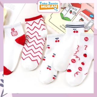 TJM KK205 Kaos Kaki Wanita Motif Cherry Merah Kaos Kaki Pendek Socks Fashion Korean