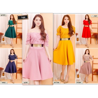 Kathryn collection #153, DRES MEDIUM SPAN SCUBA IMPORT PREMIUM KOMBINASI BRUKAT GLITER FREE BELT