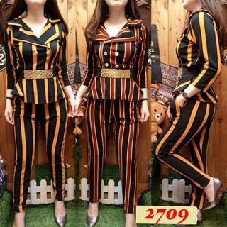 Kathryn collection #019 , Stelan peplum kancing nempel krah jas +belt celana pjg tgn 3/4