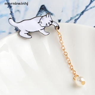 Mornin Bros Pin Enamel Kucing Lucu Hias Mutiara Untuk Aksesoris Kerah Kemeja Wanita