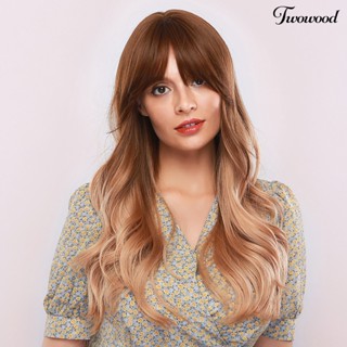 Twowood Wanita Panjang Keriting Wig Gradien Coklat Bergelombang Tahan Panas Sopak Pesta Cosplay