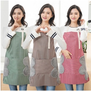 Celemek Apron Motif Salur Premium Celemek Masak Dapur Anti Air Minyak + Lap Tangan Serbaguna
