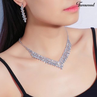 Twowood 1set Anting Pernikahan Temperamen Pengerjaan Indah Pengerjaan Tinggi Gloss Berlian Imitasi Bertatahkan Geometris Dekorasi Shinyny Makan Berat Wanita Perhiasan Kalung Pernikahan Aksesori