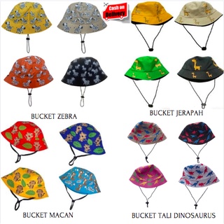 BUCKET HAT ANAK TALI KARAKTER JERAPAH / ZEBRA / MACAN / DINOSAURUS USIA 1-8 TAHUN LAKI PEREMPUAN