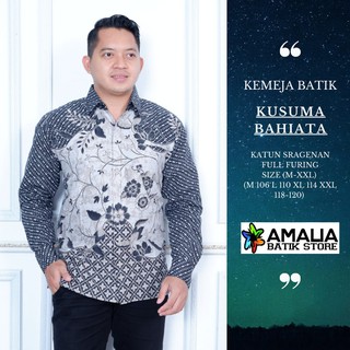 KUSUMA BAHIATA BATIKSOLOAMANAH KEMEJA BATIK SOLO PRIA LENGAN PANJANG PENDEK LAPIS FURING ATASAN PREMIUM MODERN KATUN HALUS KEMBAR SIAM BAUREKSO NAVY PERMATA BIRU LESMANA MERAK PUTIH ABHINAYA PEKSI SEMULUR BONDOWONGSO MACAN RAFFI AJI LUWUNG KANAYA AMALIA