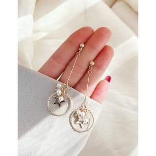 LRC Anting Tusuk Fashion Golden Crystal Tassel Star Circle Zircon P92780