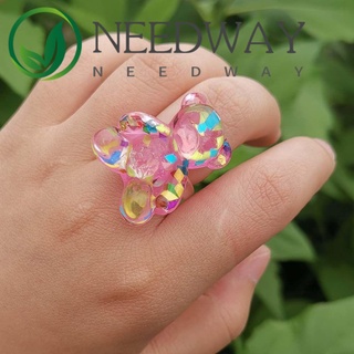Needway Gifts Resin Rings Sweet Bear Finger Rings Party Jewelry Big Cute Lovely|Color Jelly Color Crystal Korean Style/Multicolor
