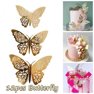 12pcs Hiasan Kupu-Kupu Bahan Metal Warna Emas Untuk Dekorasi Kue Pernikahan