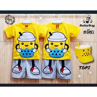SETELAN BAJU ANAK BOBA MINUMAN KUNING GRATIS TOPI / BAJU ANAK BOBA GRATIS TOPI KUNING