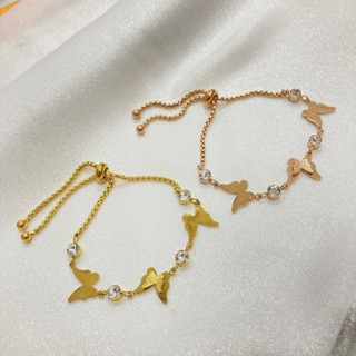 Gelang Tangan Titanium Kupu-Kupu Permata Model Serut Awet Anti Karat 0802ac