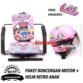 FREE MASKER!! PAKET KURSI BONCENGAN MOTOR ANAK + HELM RETRO ANAK